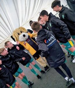 Pontnewydd Under 13s, a team of talented and hardworking youngsters, proudly sported their new training jackets during a recent outing to Rodney Parade, where they served as flag bearers for the Newport County AFC vs. Cheltenham match.